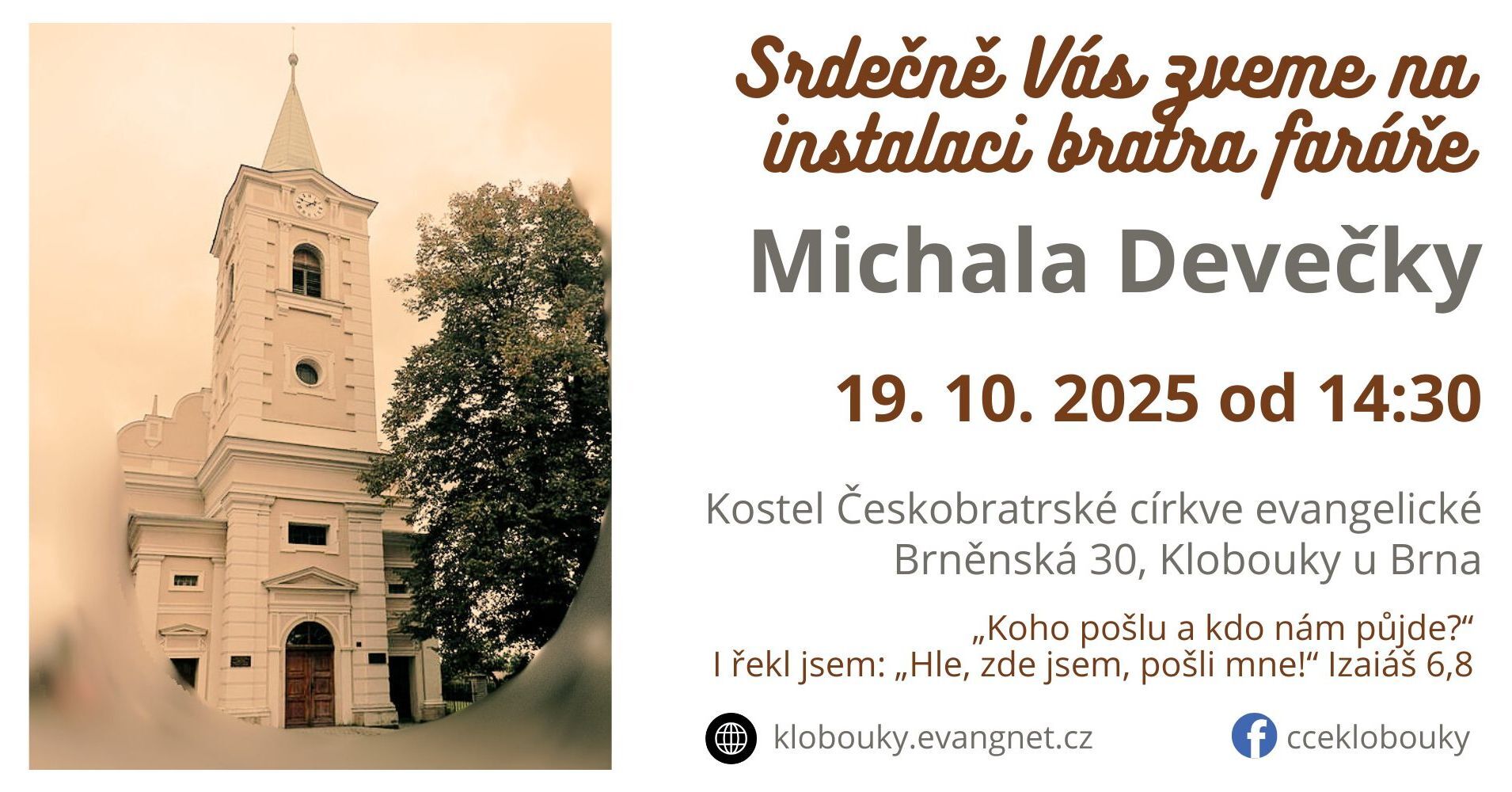 V neděli 31. 8. 2025 se konalo během bohoslužby také sborové shromáždění, jehož jediným bodem programu byla volba nového faráře klobouckého sboru. Sborovému shromáždění předcházela volba na dálku, těch členů sboru s hlasovacím právem, kteří měli zájem. Jediným kandidátem staršovstva byl bratr Michal Devečka, rozhovor s ním byl publikován v minulém čísle Klobouckých zvonů. Volby se prezenčně zúčastnilo 39 členů sboru s hlasovacím právem a dalších 14 členů hlasovalo na dálku. Celkem bylo započteno 53 hlasů, z toho 51 hlasů bylo pro volbu bratra Devečky a 2 hlasy byly proti. Bratr Michal Devečka byl zvolen farářem sboru od 1. 10. 2025 na období pěti let.