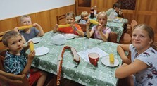 sborové zpívání pro zájemce vedl kurátor Michal Marcolla. Nechyběl ani tradiční nedělní pochod na bohoslužbu do blažkovské modlitebny a středeční výlet do Strážku na zmrzlinu. Nevynechali jsme ani páteční jarmark pro děti, kdy si mohly vysoutěžit různé hračky.